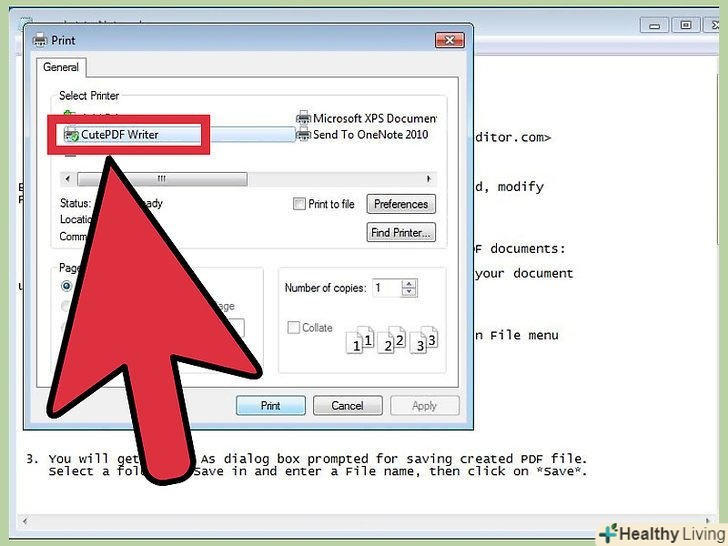 Виберіть "Cutepdf Writer" у списку доступних принтерів. натисніть Print (друк), щоб створити PDF-файл.