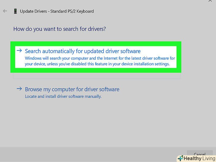 НатиснітьАвтоматичний пошук оновлених драйверів . це перша опція у спливаючому вікні. Windows приступить до пошуку нових драйверів клавіатури.
