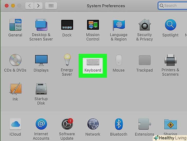 Клацніть поКлавіатура . цей значок у вигляді клавіатури знаходиться в нижній частині вікна "Системні налаштування".