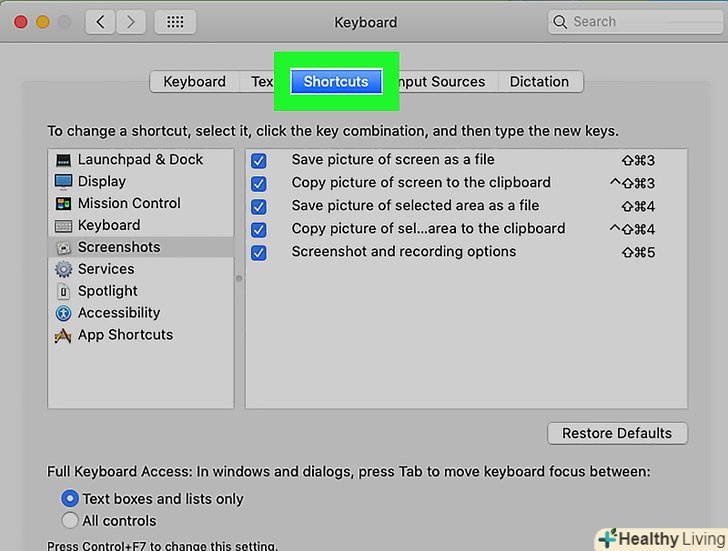 Клацніть по вкладціСполучення клавіш . вона знаходиться у верхній частині вікна.