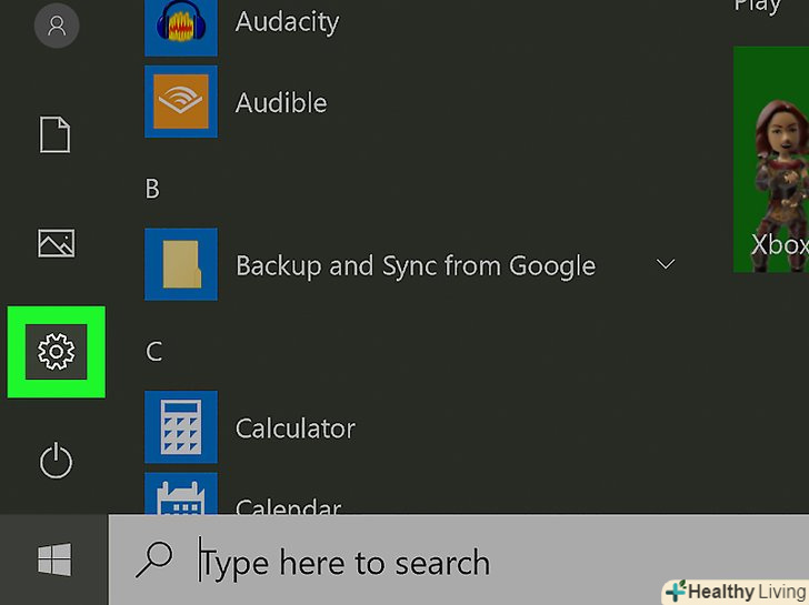 Натисніть»Параметри". клацніть по значку у вигляді шестерінки в нижній лівій частині меню «Пуск».