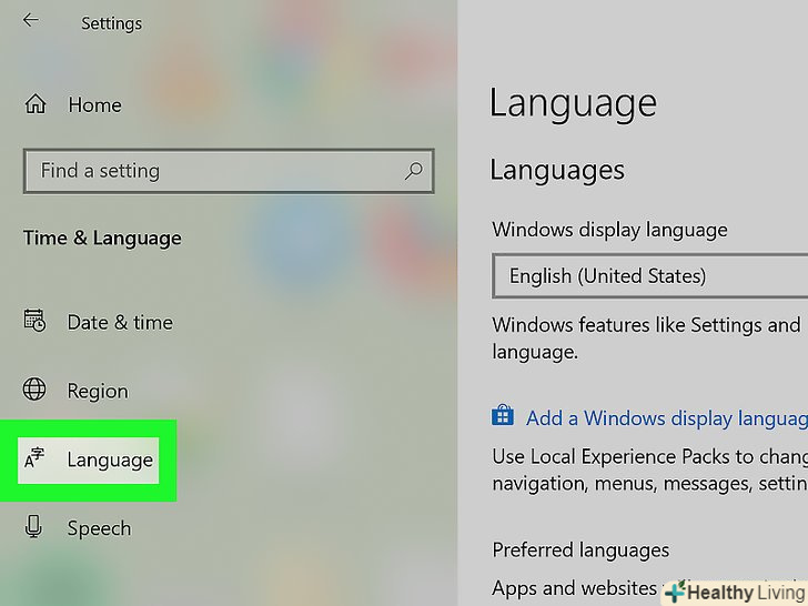 Перейдіть на вкладкуРегіон і мова . вона знаходиться в лівій частині сторінки.