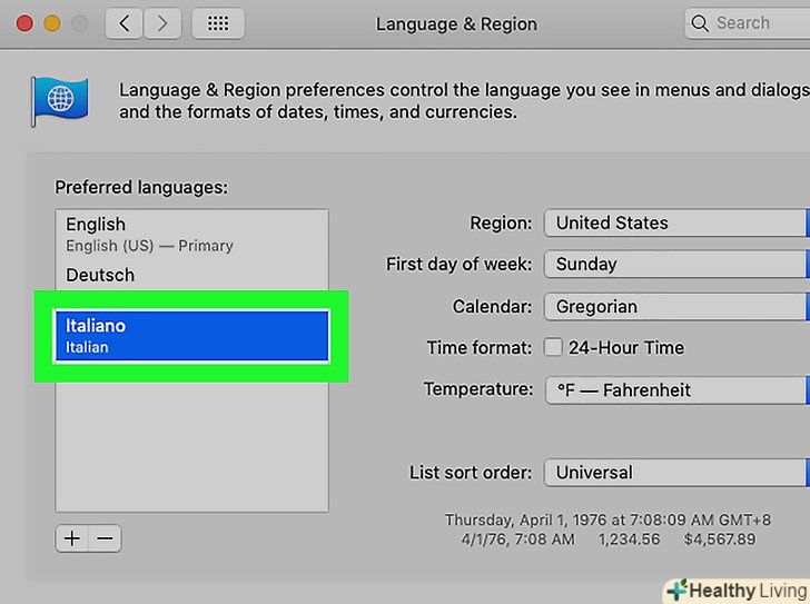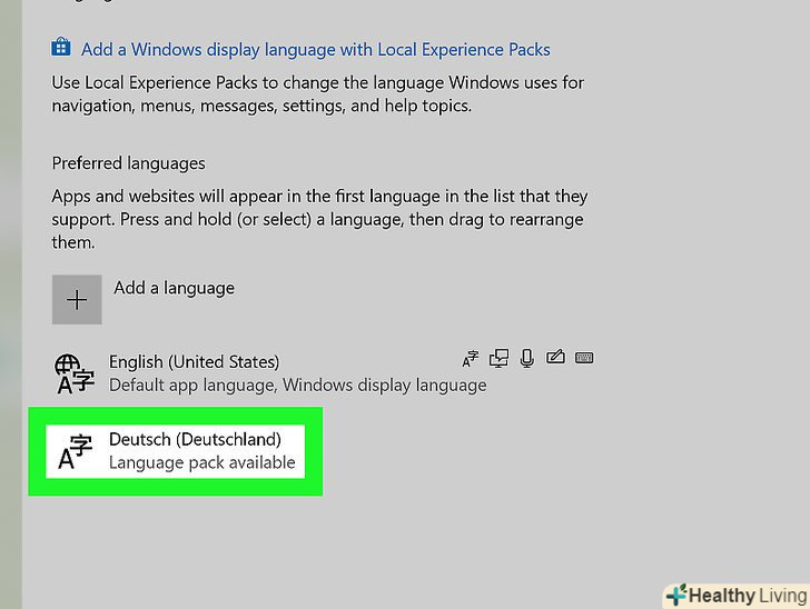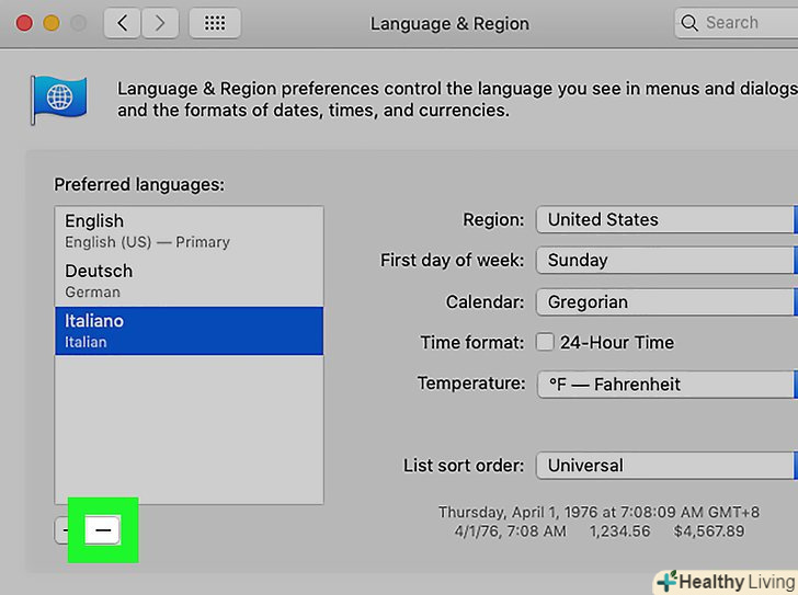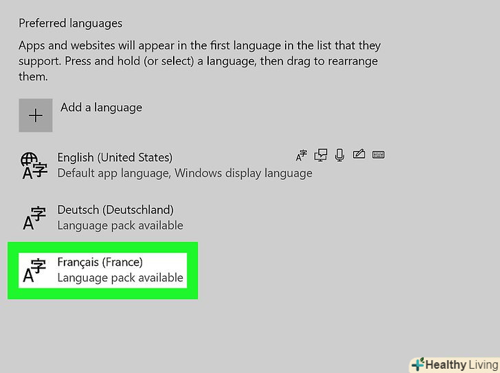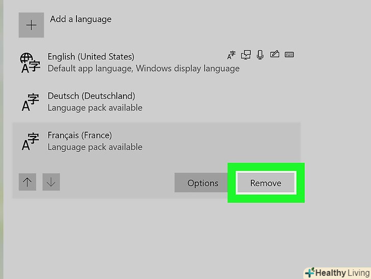 Клацніть по- . ця кнопка знаходиться під списком мов. Виділена мова буде видалена.- Перша мова списку є мовою, яка використовується за замовчуванням. Щоб змінити цю мову, перетягніть іншу мову на перший рядок списку.