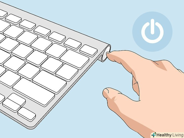 Натисніть і утримуйте кнопку живлення на клавіатурі. не відпускайте кнопку, коли клавіатура включиться.