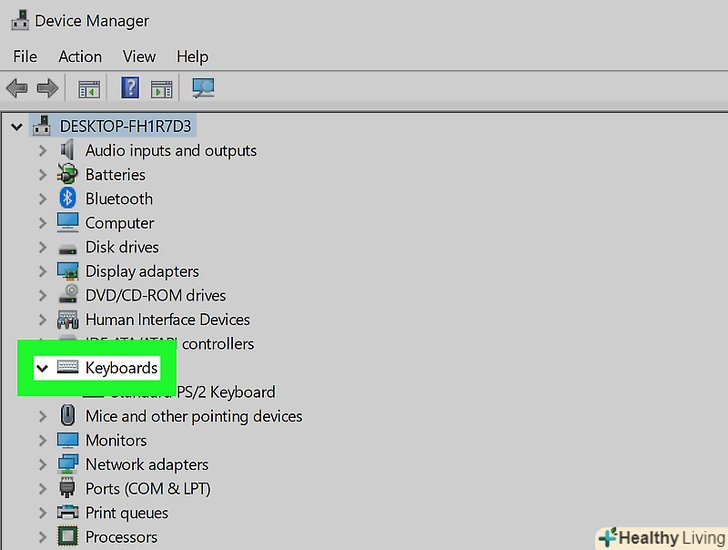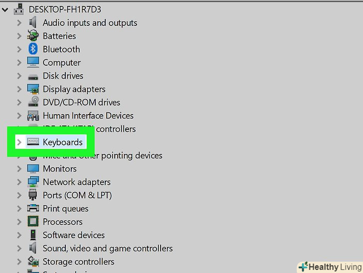 Прокрутіть вниз і розгорніть розділКлавіатура . для цього клацніть по значкуліворуч від «Клавіатура". Відкриється список клавіатур, підключених до комп'ютера.