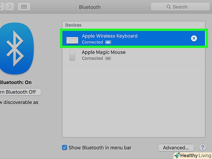 Виберіть клавіатуру. утримуючи кнопку живлення, клацніть по імені клавіатури в меню «Bluetooth».