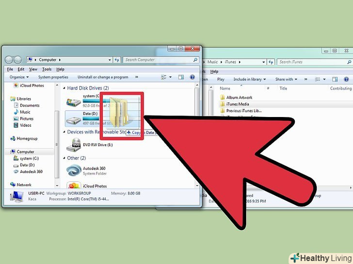 Клікніть на папку iTunes Media і перетягніть її на зовнішній жорсткий диск.де знаходиться папка iTunes Media, можна дізнатися з кроку 1. Почнеться копіювання файлів на зовнішній жорсткий диск. Чим більше бібліотека, тим довше це займе.