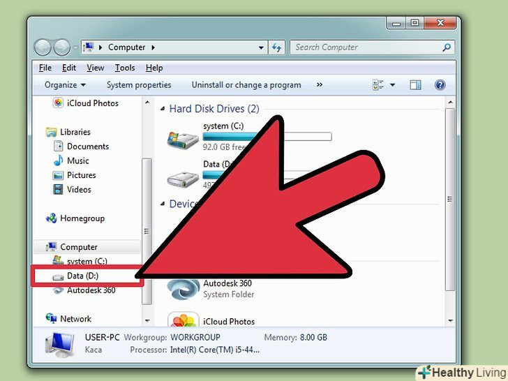Відкрийте iTunes на другому комп'ютері. скориставшись наведеними в кроці 1 інструкціями, знайдіть папку iTunes Media. Підключіть до комп'ютера зовнішній жорсткий диск з бібліотекою iTunes.- Якщо на цьому комп'ютері вже є якась музика, і ви б хотіли її зберегти, зробіть копію і збережіть десь ще на комп'ютері, хоча б на робочому столі.