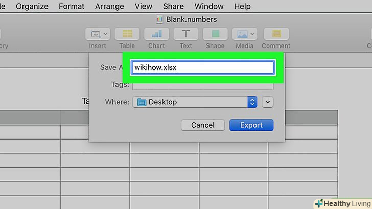 Введіть ім'я файлу. під цим ім'ям файл буде відображатися як в Numbers, так і в Excel.