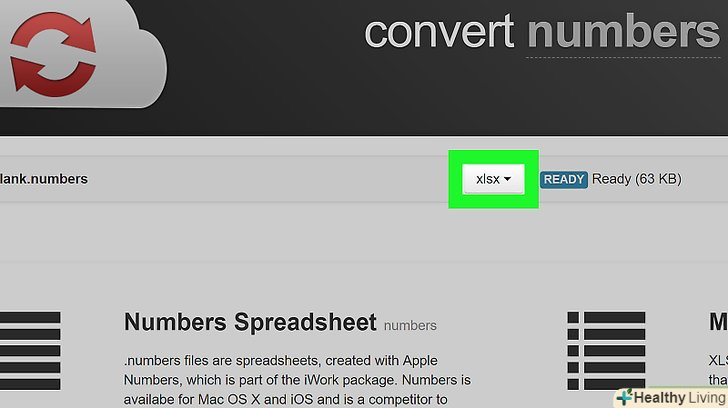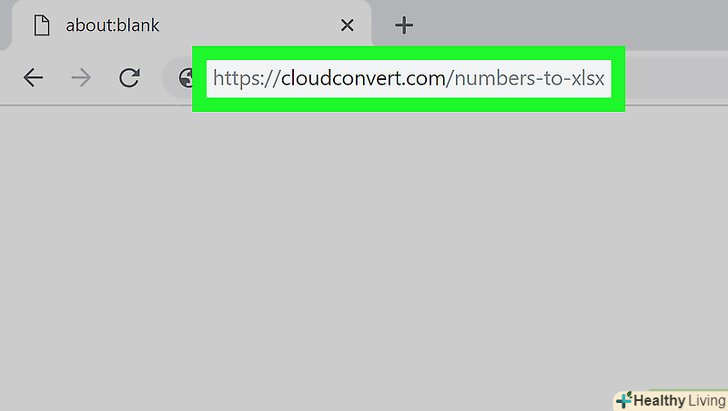 Відкрийте сайт сервісу CloudConvert. перейдіть на сторінку https://cloudconvert.com/numbers-to-xlsx. Скористайтеся цим сервісом, тому що в Windows файл Numbers не можна перетворити в таблицю Excel.