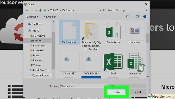 НатиснітьВідкрити. Файл Numbers завантажиться на веб-сайт CloudConvert.
