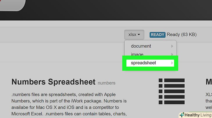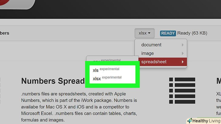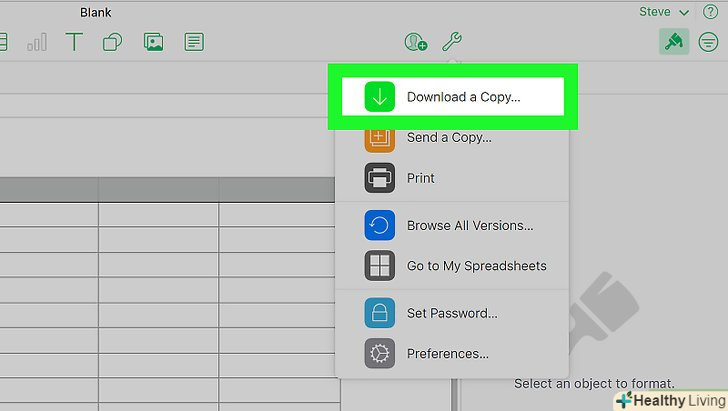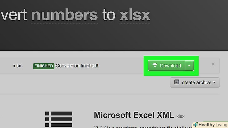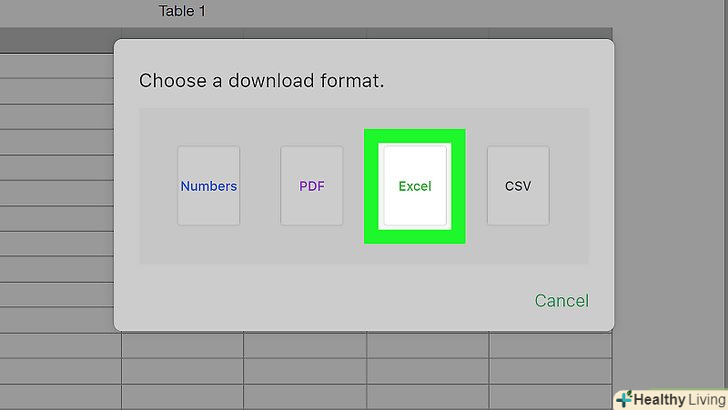 Клацніть поExcel.ця опція знаходиться праворуч від вікна "завантажити копію". На комп'ютер буде завантажений файл Numbers в форматі XLS.