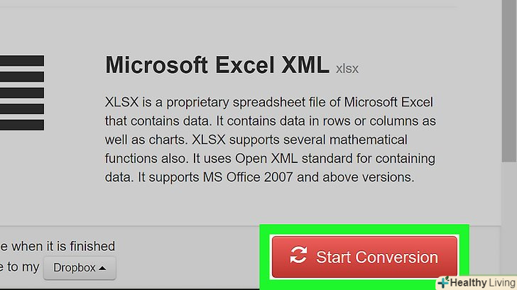 НатиснітьStart Conversion (почати конвертування). це червона кнопка в нижньому правому куті сторінки. Файл Numbers буде перетворений в обраний вами формат Excel.
