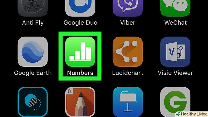 Запустіть програму Numbers. натисніть на значок у вигляді білих стовпців на зеленому тлі.
