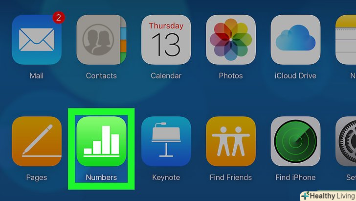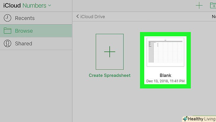 Відкрийте файл Numbers.якщо він знаходиться в iCloud, він відобразиться на сторінці Numbers.- Щоб завантажити файл з комп'ютера, клацніть по значку у вигляді зеленої шестерінки, натисніть " Завантажити електронну таблицю» і виберіть свій файл Numbers.
