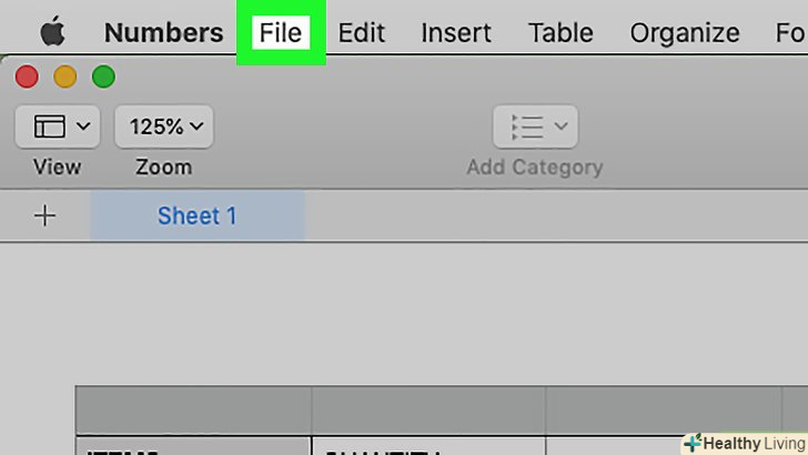 Відкрийте файл Numbers.у верхньому лівому куті панелі меню Mac відобразиться заголовок "Numbers".