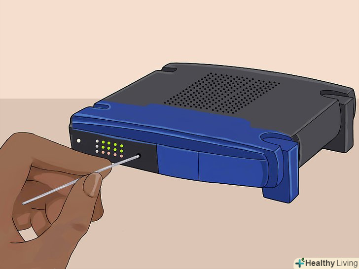 Скиньте налаштування маршрутизатора.дочекайтеся миготіння індикатора електроживлення, а потім натисніть і утримуйте кнопку "Reset" (Скидання) протягом 10 секунд.- Кнопка "Reset", як правило, розташована на задній панелі маршрутизатора поруч з кабелем живлення, але її розташування може змінюватися в залежності від моделі пристрою.