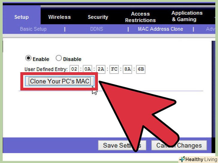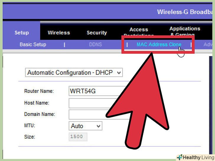 Перейдіть на вкладку " Setup "(налаштування), а потім натисніть «MAC Address Clone» (Клон Mac-адреси). [2]- MAC-адреса-це унікальний ідентифікатор, що присвоюється вашим інтернет-провайдером вашому модему.