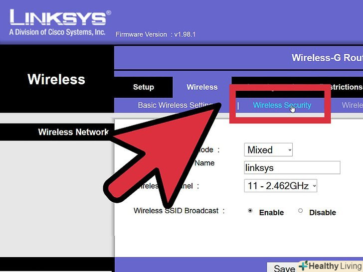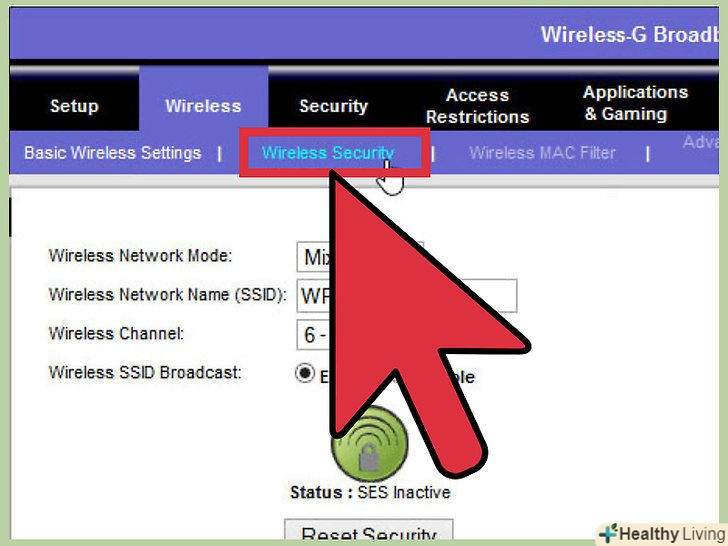 Перейти на сторінку " Linksys Security "(Безпека Linksys). після того, як ви змінили пароль для апаратного маршрутизатора, ви повинні створити ім'я користувача та пароль для доступу до бездротової мережі.[3] на сторінці адміністратора Linksys перейдіть на вкладку "Security" (Безпека).