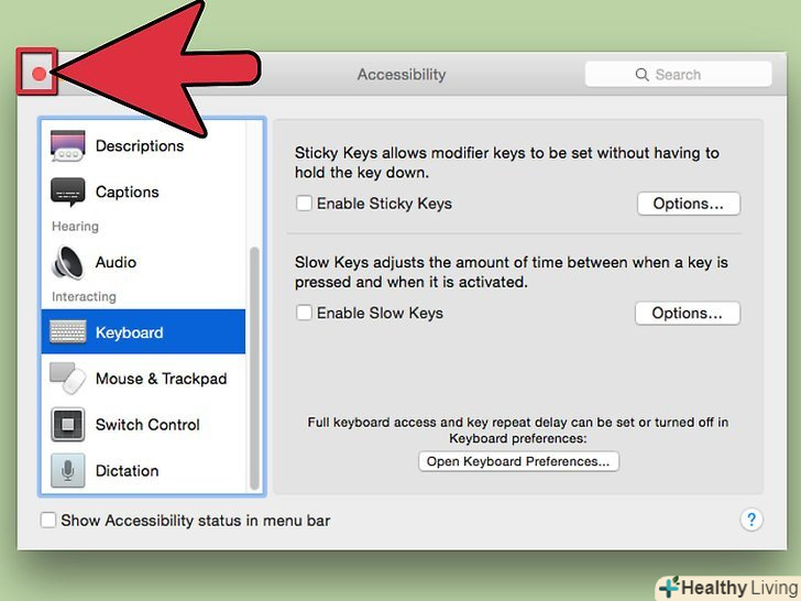 - Ви можете встановити додаткову функцію відключення кнопок миші. Виберіть вкладку "Mouse amp; Trackpad" (Миша і трекпад). Увімкніть кнопки миші і поставте прапорець в нижньому полі. Ви можете натиснути на кнопку Option 5 разів, щоб контролювати мишу за допомогою клавіатури, і скасувати за допомогою ще 5 натискань Option.