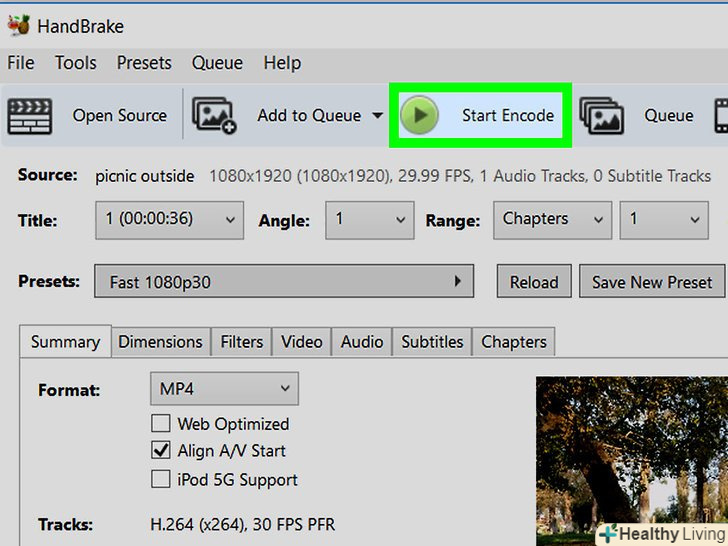 Налаштуйте параметри відео в розділі " Advanced "(Додатково), а потім натисніть «Start». WinAVI перетворює WMV-файл в MP4.[3]