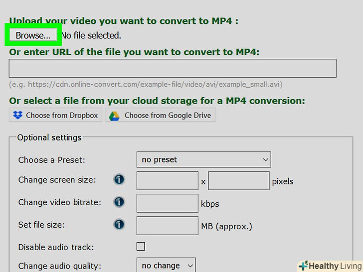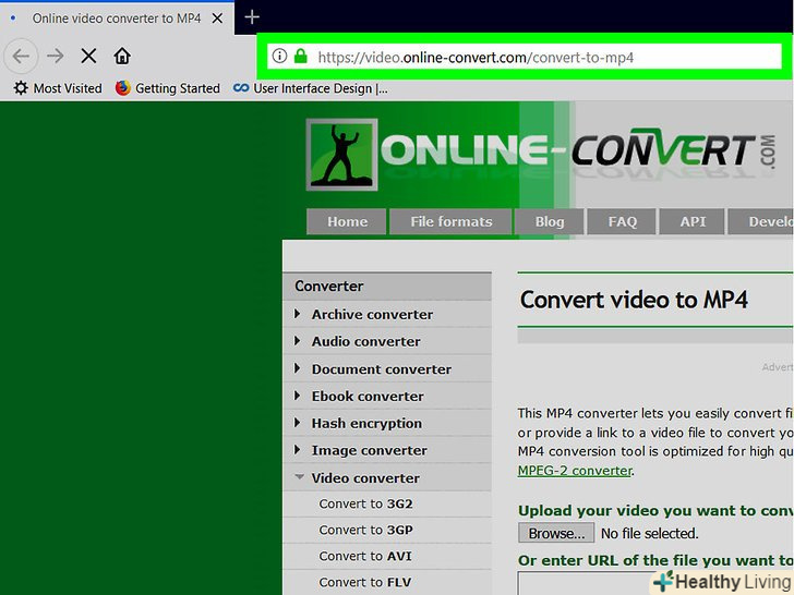 Перейдіть на сторінку відео-конвертера, пройшовши за адресою: https://video.online-convert.com/ru/convert-to-mp4.