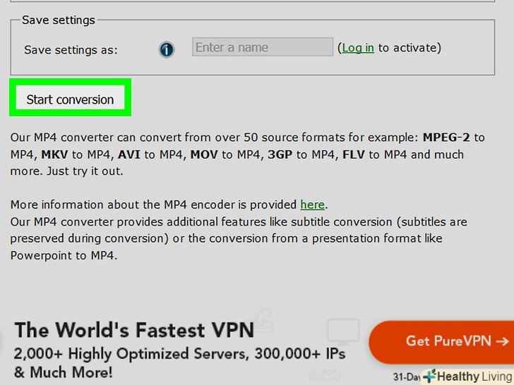 Налаштуйте параметри відео в розділі "Додаткові налаштування«, а потім натисніть на»перетворити файл".сайт онлайн конвертації автоматично перетворює WMV-файл в MP4 і завантажить його прямо на комп'ютер.[1]