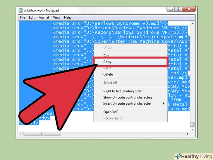 Якщо вам коли-небудь захочеться роздрукувати список пісень з програвача Windows Media, перетягніть вміст бібліотеки в список відтворення, а потім відкрийте список в блокноті. Після цього документ можна перевести в звичайний текст (більш зручний формат, ніж стандартний формат Windows Media), скориставшись функцією Microsoft Word «знайти і замінити».