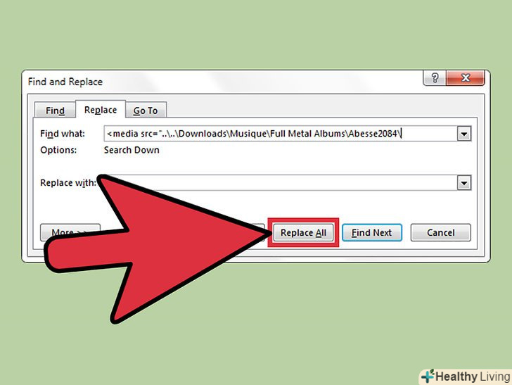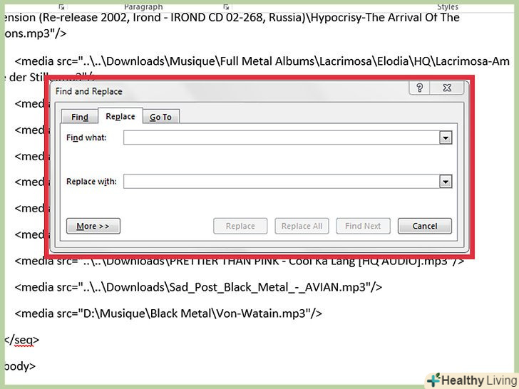 Ознайомтеся з функцією " Знайти і замінити». Для активації цієї функції необхідно натиснути комбінацію Ctrl+H. Після цього введіть в поле «Знайти» текст, який необхідно знайти, а в поле "Замінити" - текст заміни. За допомогою цієї функції можна прибрати мітки HTML з писку пісень, що зробить його більш зручним для читання.