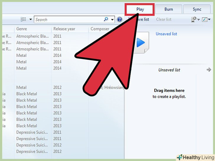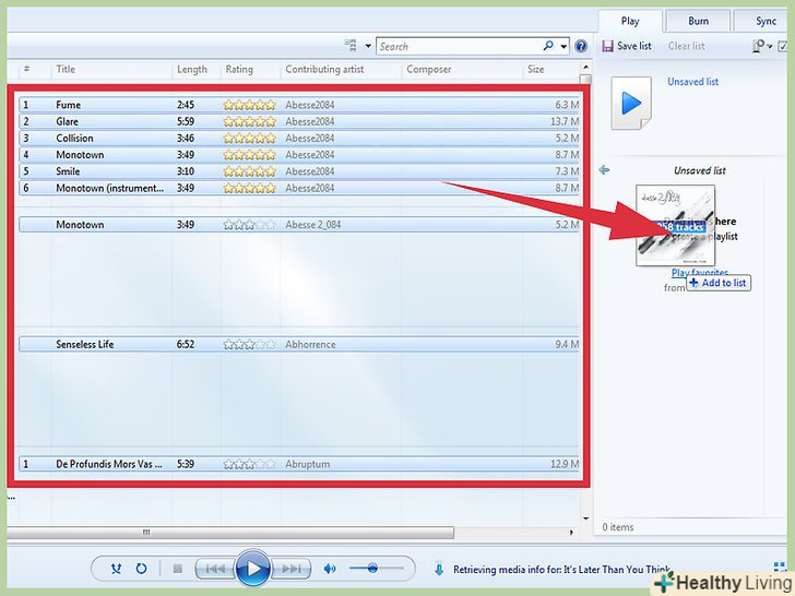 Натисніть і перетягніть виділені пісні на панель "відтворення", щоб додати бібліотеку в новий список відтворення.