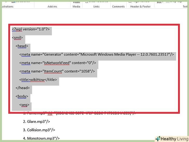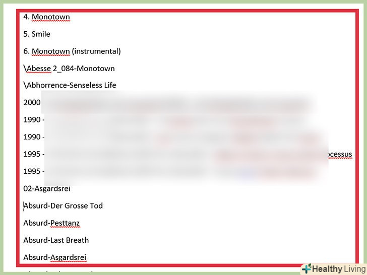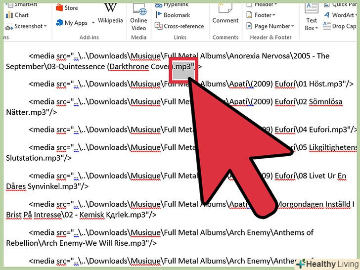 Видаліть текст HTML на початку і в кінці списку. На початку абзацу і перед ім'ям першого виконавця буде стояти ряд міток HTML. Ці ж мітки будуть стояти і в самому кінці. Виділіть їх і натисніть Delete. Це має бути остання частина тексту.