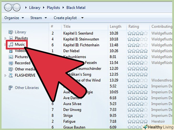 Натисніть на "Музика" на панелі опцій в лівій частині вікна.