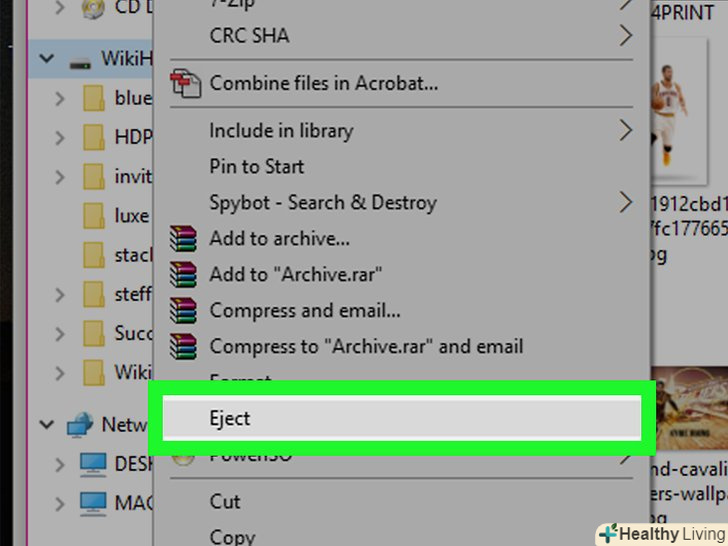 - Клацніть правою кнопкою миші по значку флеш-накопичувача у спливаючому меню;