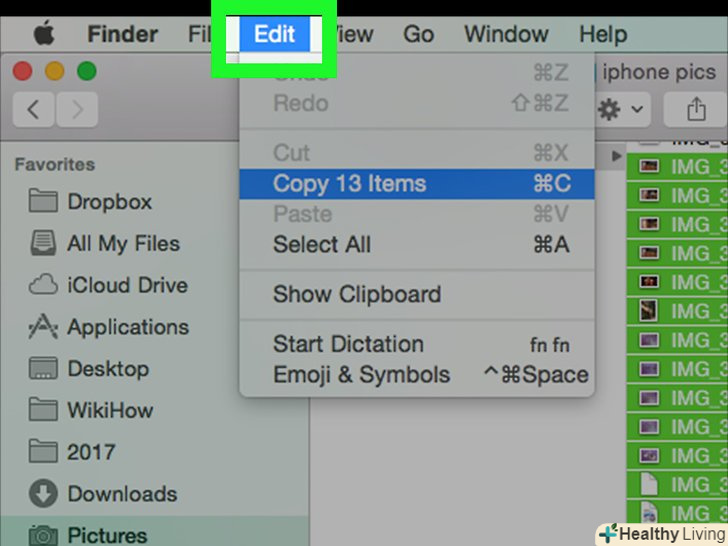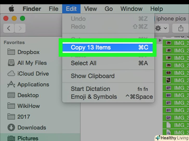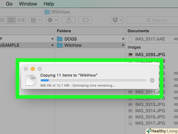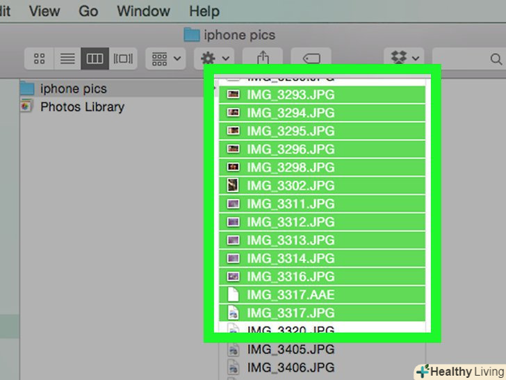 Виберіть файли, які хочете скопіювати.відкрийте папку з файлами, утримуйте ліву кнопку миші і проведіть покажчиком над потрібними файлами.- Також можна утримувати⌘ command і клацнути по кожному потрібному файлу.