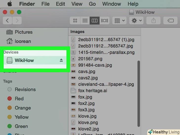 Натисніть на ім'я зовнішнього жорсткого диска. воно знаходиться в розділі "Пристрої" на лівій панелі Finder. Відкриється вміст жорсткого диска.- Якщо зовнішній жорсткий диск не відображається, підключіть його до іншого USB-порту.