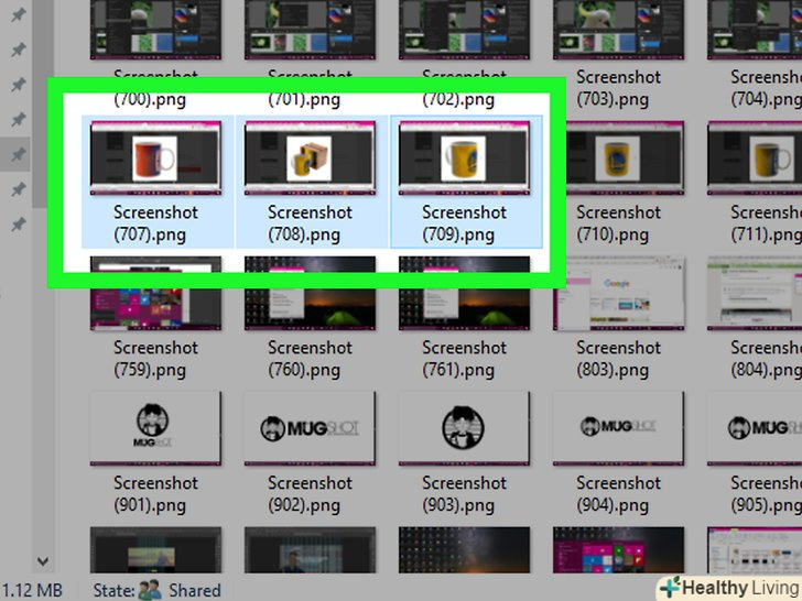 Виберіть потрібні файли.утримуйте ліву кнопку миші і проведіть вказівником над файлами.- Також можна утримуватиCtrl і клацнути по кожному потрібному файлу.