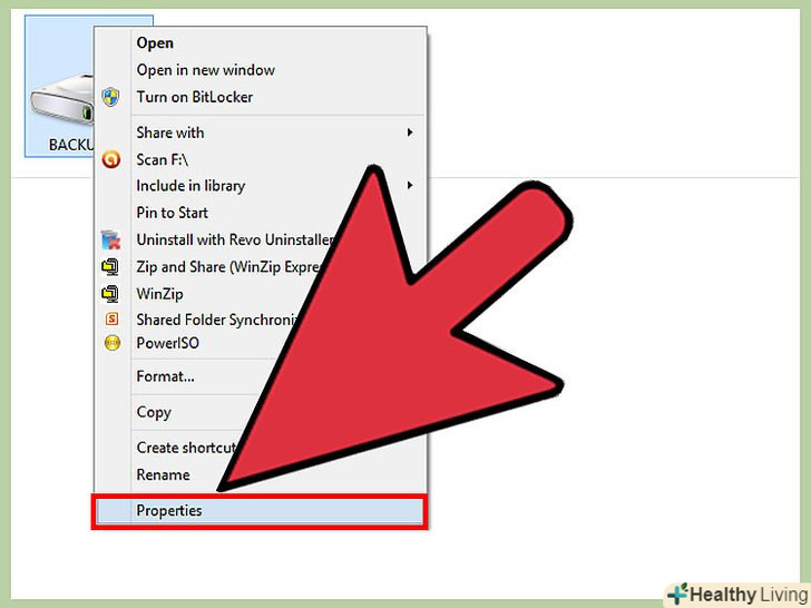 Клацніть правою кнопкою по диску і виберіть "Властивості". або натисніть "Файл «(у рядку меню зверху) gt;»властивості".