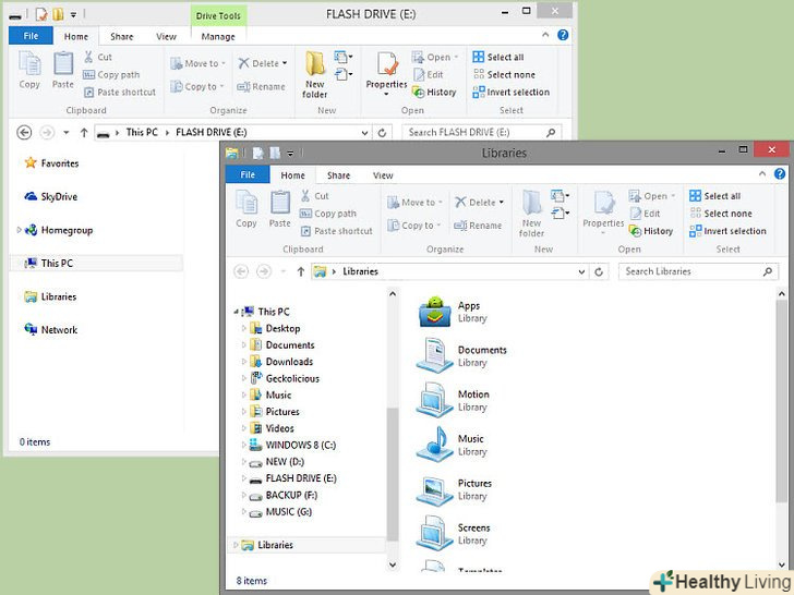 Скопіюйте файли з накопичувача в папку або на робочий стіл комп'ютера. розмістіть вікно накопичувача і вікно папки поруч один з одним, а потім перетягніть файли з вікна накопичувача у вікно папки.- Якщо ви перетягнули файли на робочий стіл, пізніше можна перенести їх у відповідні папки.[1]