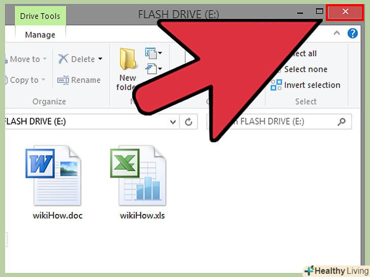 Поверніться у вікно зовнішнього накопичувача і закрийте його.відкрийте вікно "Мій комп'ютер«, клацніть правою кнопкою миші по зовнішньому накопичувача і в меню виберіть»витягти".- Якщо відключити накопичувач, перш ніж він буде витягнутий, це може привести до пошкодження деяких файлів.