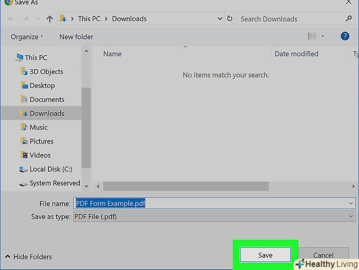 НатиснітьЗберегти.ця кнопка розташована внизу вікна. Заповнена PDF-форма буде збережена в зазначеній папці.