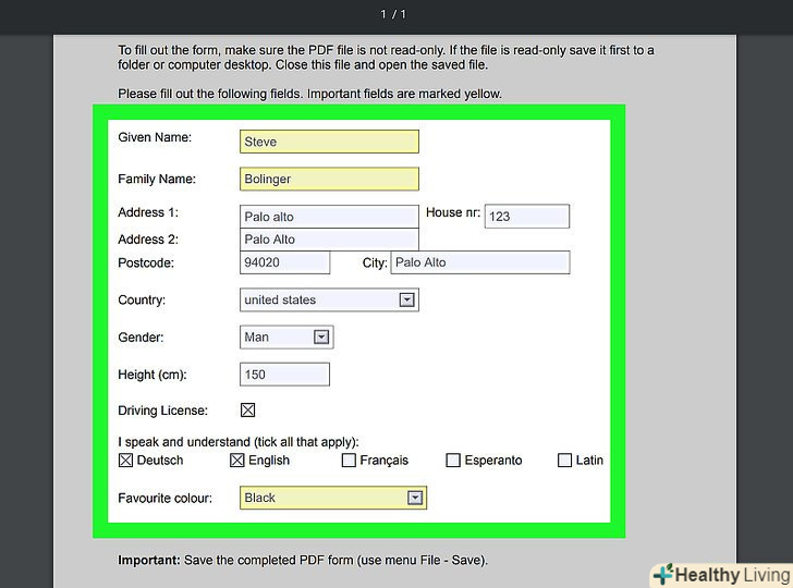 Заповніть PDF-форму. клацніть по текстовому полю в PDF-документі і введіть текст; повторіть це з іншими текстовими полями, щоб заповнити всю форму.- Щоб поставити прапорець, просто клацніть по віконцю мітки.