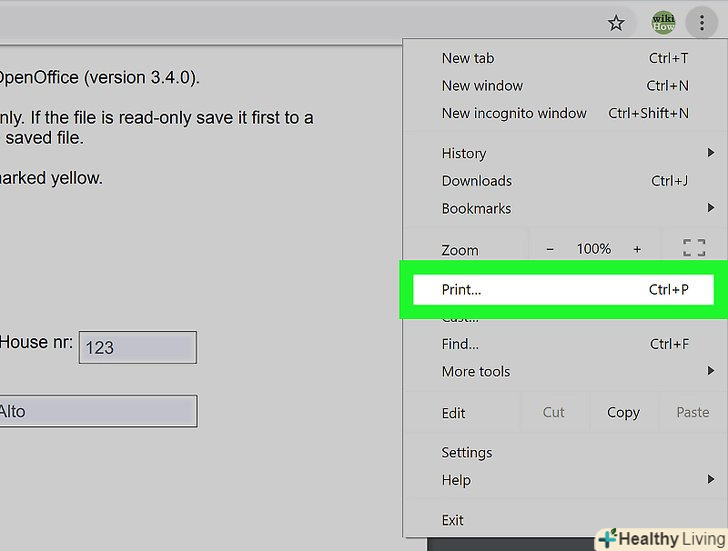НатиснітьДрук.ви знайдете цю опцію у верхній частині меню. У лівій частині вікна Chrome відобразиться панель "друк".