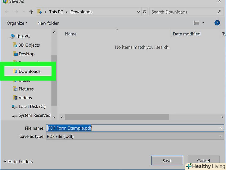 Виберіть папку для збереження PDF-файлу. клацніть по потрібній папці в лівій частині вікна.- На комп'ютері Mac вам, можливо, доведеться клацнути по полю «де», а потім в меню вибрати папку.