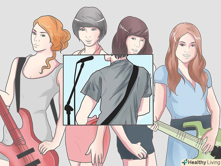 Продумайте "сценічний образ".сьогодні майже всі групи носять чорні речі і підводять очі, роблять пірсинг або стають жертвами моди на інді-стиль. Придумайте щось оригінальне і зробіть це своєю фірмовою рисою. Пам'ятайте, як виглядають учасники групи KISS? Наприклад, жіноча частина групи може приміряти на себе образ школярок, а вокаліст одягатися як в еру розквіту глем-року. Вас повинні запам'ятати!