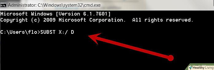 Щоб прибрати прив'язку, надрукуйте SUBST X: / D