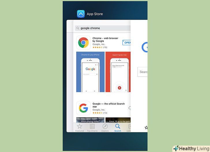 Двічі натисніть кнопку «Додому» і в списку додатків, якими ви недавно користувалися, виберіть Chrome.скористайтеся цим методом в тому випадку, якщо додаток «зависло» або погано працює.