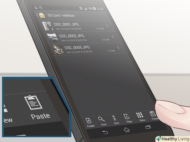 Натисніть на кнопку "Меню «і виберіть»Вставити". фотографії будуть переміщені.