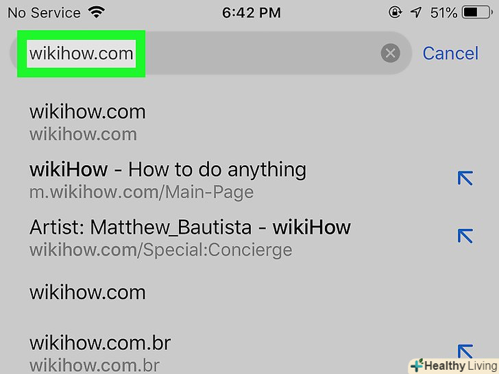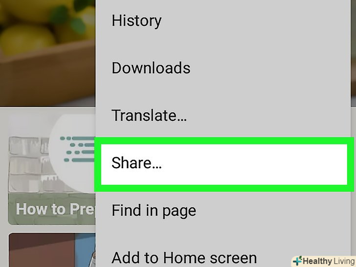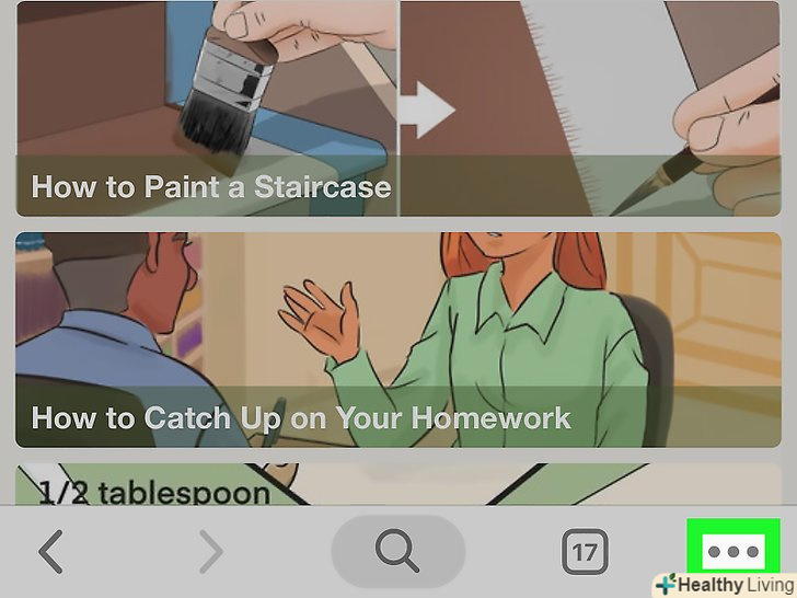 Торкніться…. цей значок знаходиться в правому верхньому куті. Відкриється меню.- У Safari натисніть на значок "поділитися". Він виглядає як квадрат зі стрілкою на синьому тлі і знаходиться в правому верхньому куті.