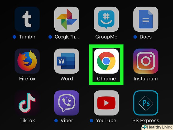 Запустити Google Chrome. натисніть на значок у вигляді червоно-зелено-жовто-синього кола. Ви знайдете його на головному екрані або на панелі додатків.