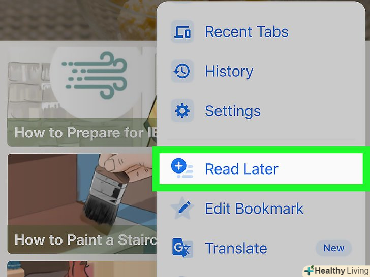 ТоркнітьсяЧитати пізніше.ця опція знаходиться внизу меню. Веб-сторінка буде додана в особливий список, доступ до якого можна отримати вгорі вікна Google Chrome.- У Safari натисніть «Створити PDF» gt; «Готово» (у верхньому лівому куті) gt; «зберегти файл в», виберіть папку для збереження PDF-документа і торкніться «додати» в правому верхньому куті.